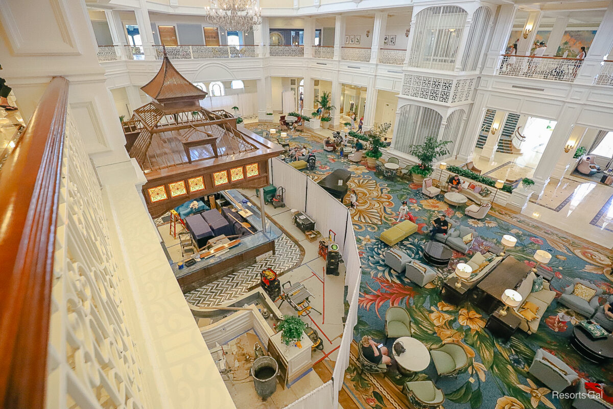 Disney announced earlier this year that the lobby would be completely renovated with construction starting in mid April. Since then, new carpet, furnishings, murals, and other updates have been unveiled.