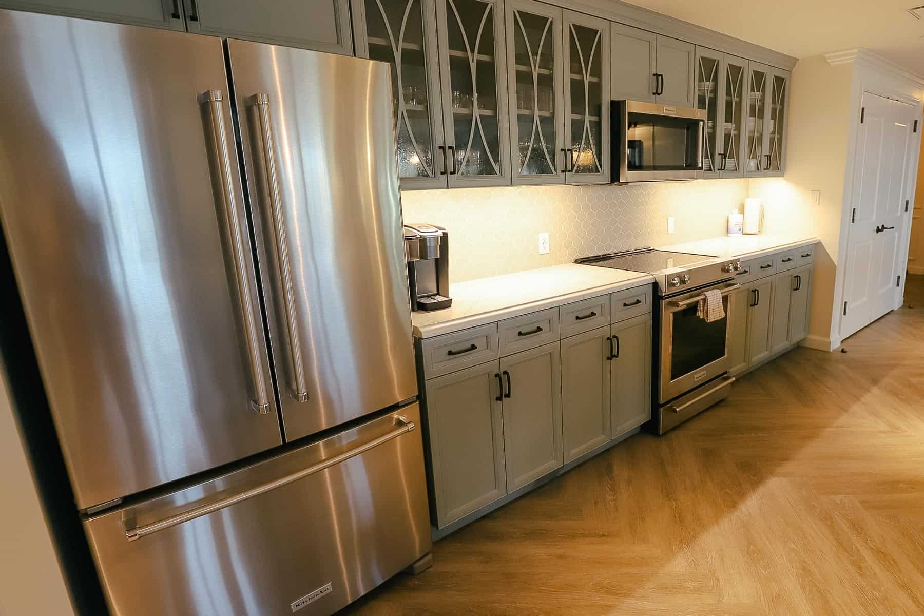 Below, we’ll preview the 3-bedroom grand villa at Disney’s Riviera. For reference, this resort is a Disney Vacation Club Resort. When it comes to a DVC Resort, units range from deluxe studios with small kitchenettes to tremendous suites with multiple bedrooms. These suites offer the conveniences of a home, like kitchens and multiple baths.