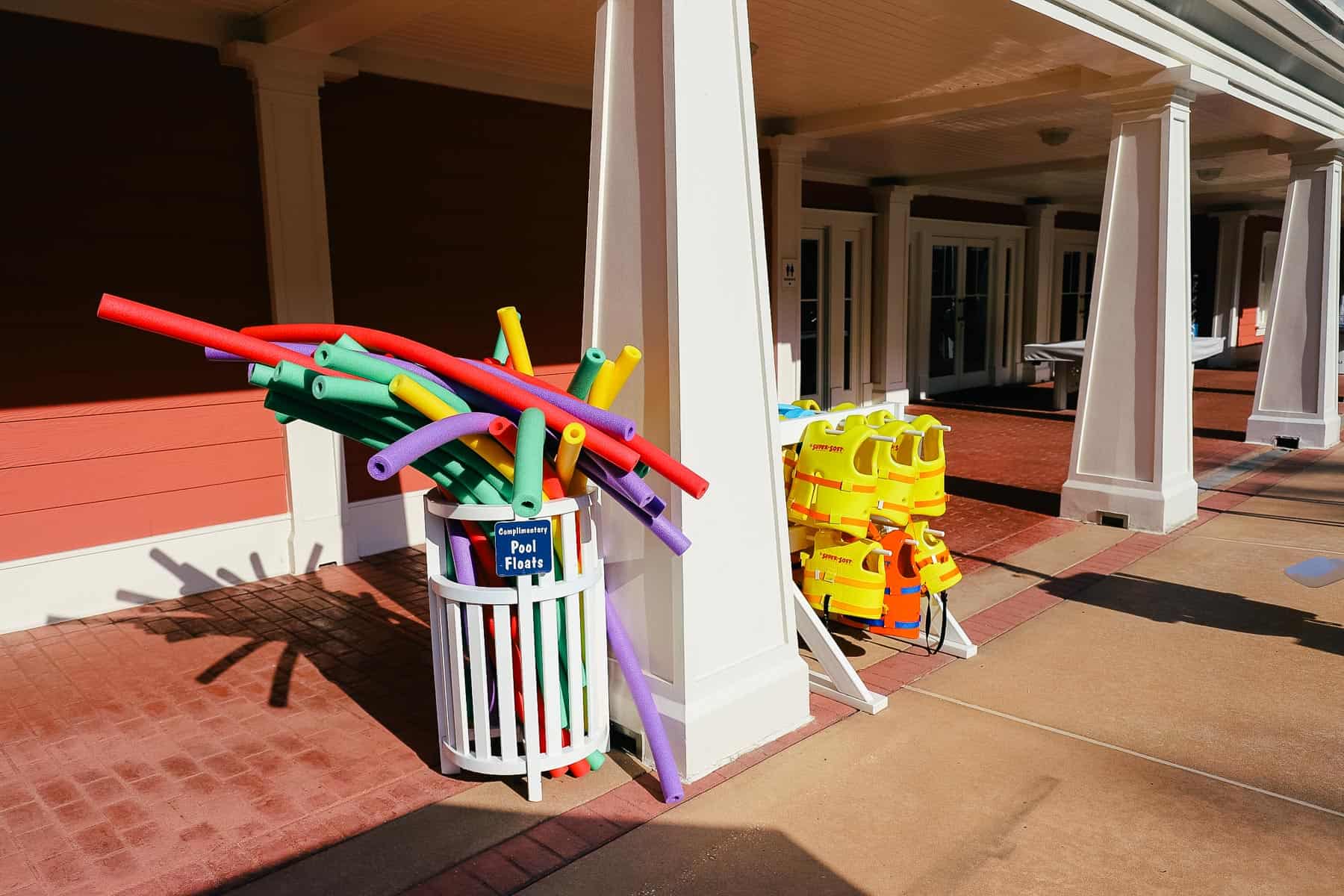 Like other pools at Walt Disney World, Boardwalk’s pools are heated to 82 degrees year-round. Towels and complimentary life jackets are provided at the pool.