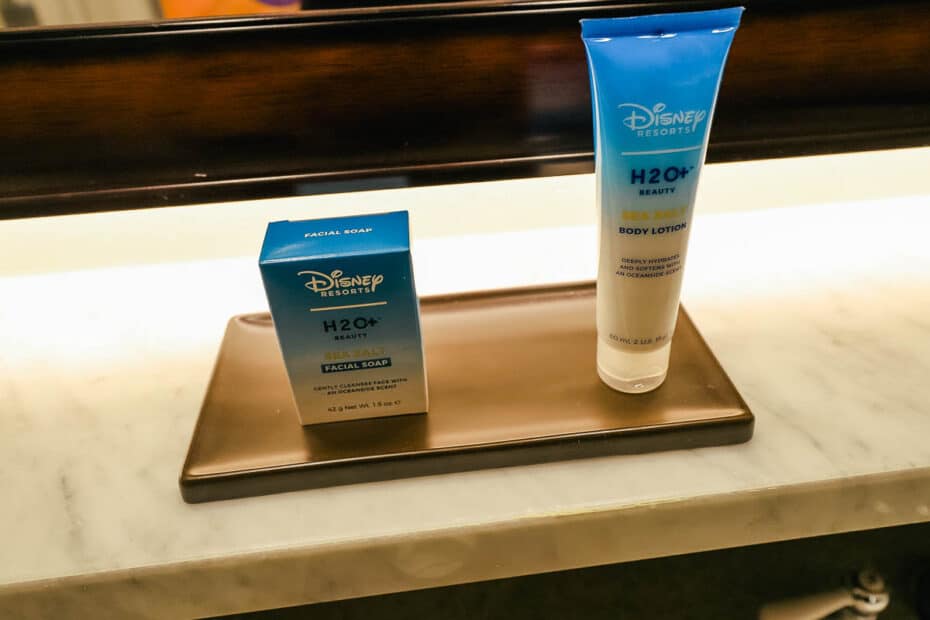 All of Disney’s moderate resorts have two sinks. A ledge is available above the sink area for storing your personal items.