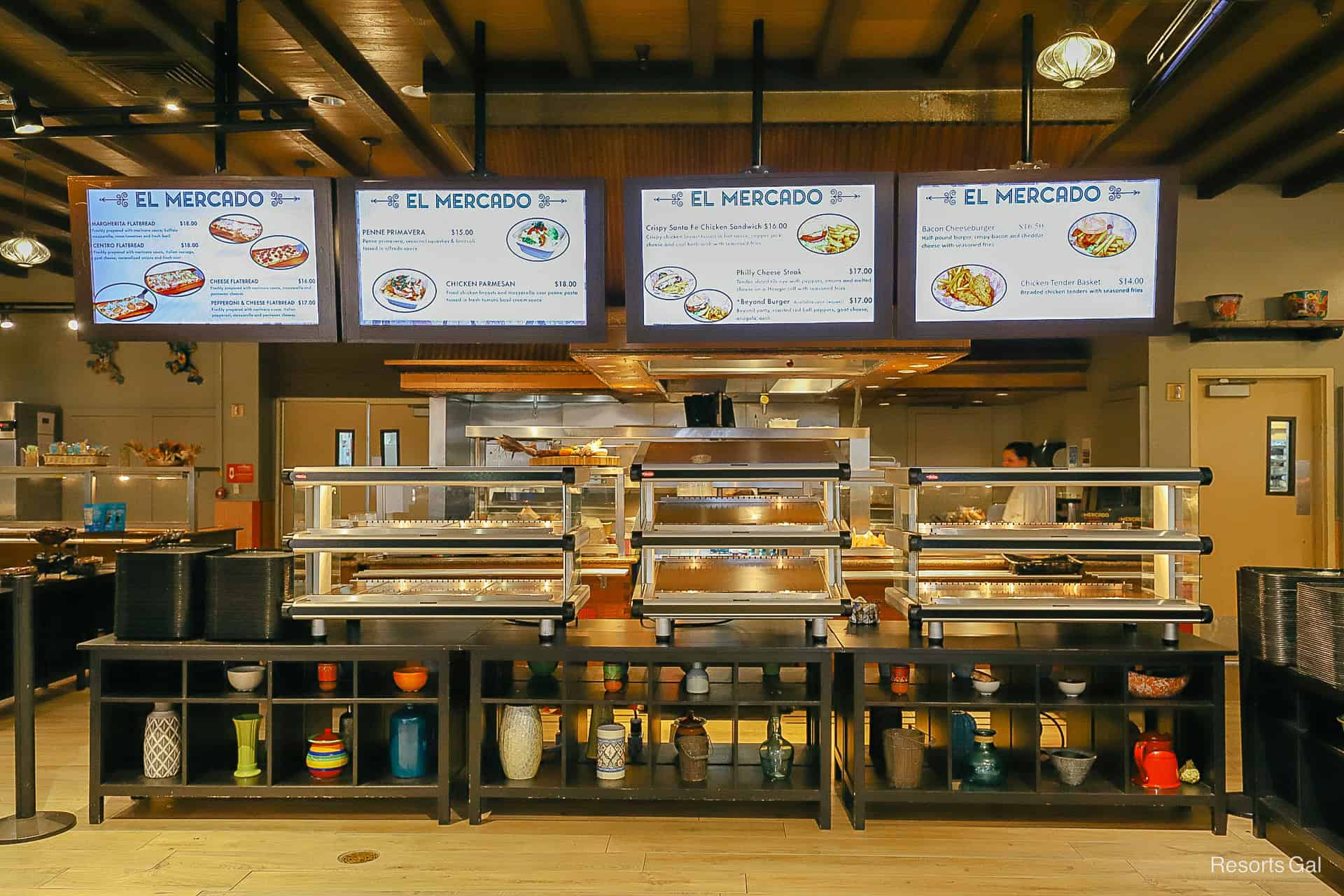 El Mercado serves breakfast, lunch, and dinner. The restaurant is open daily between 7:00 a.m. and 11:00 p.m. It closes for a brief period between 11:00 and 11:30 a.m. and then again between 2:00 p.m. and 5:00 p.m. as the restaurant changes to different meal periods. It is, however, important to note that the grab-and-go section and refillable beverage station are available for the entirety of the restaurant’s opening hours.