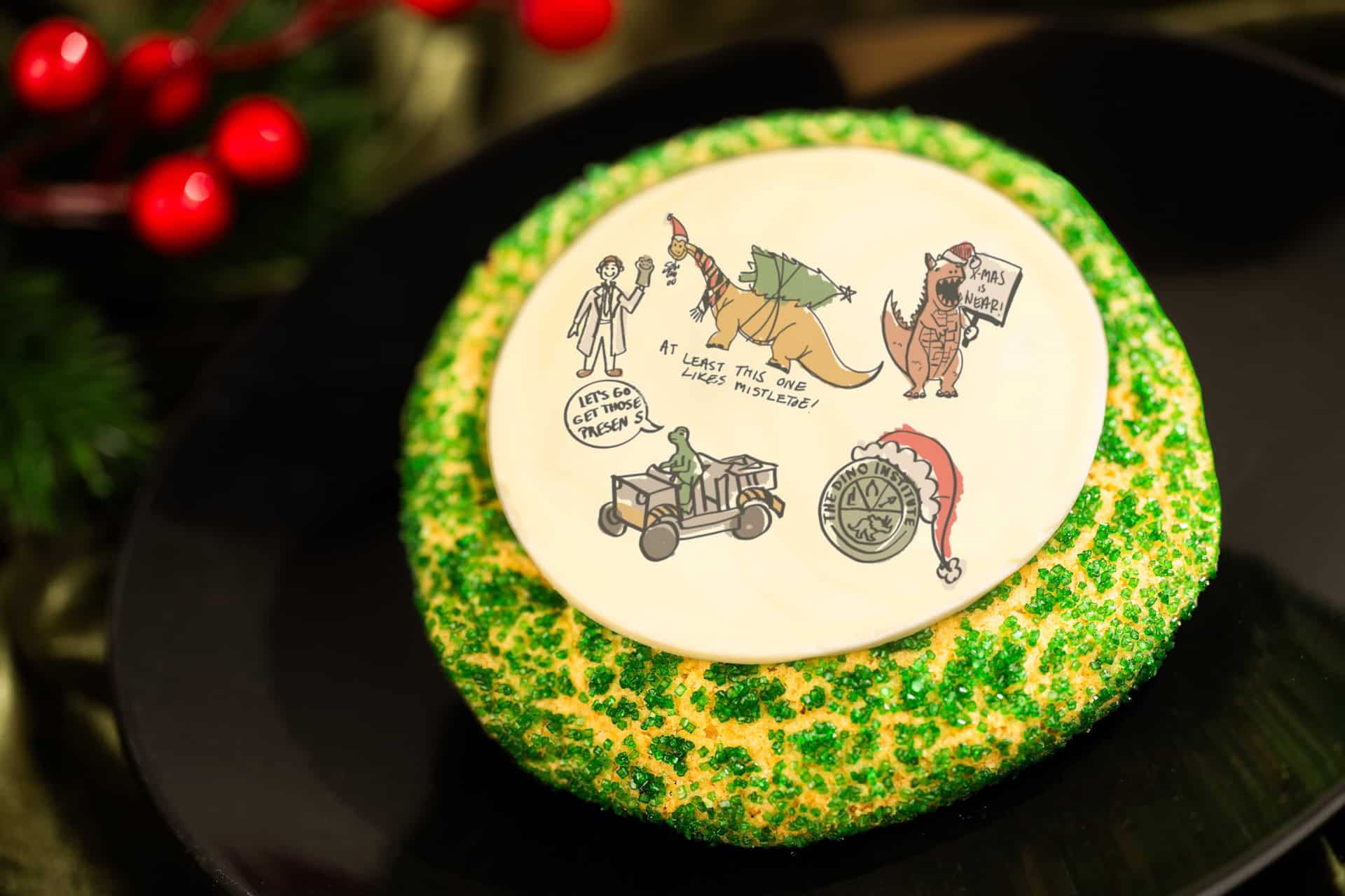 Sugar Cookie: Sugar cookie dipped in green sugar with dinosaur-themed chocolate disc (New)