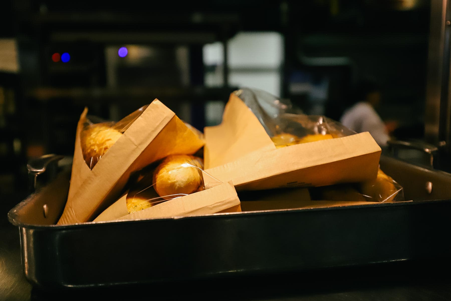 A few bags of breadsticks were available. You can order these separately, and they come on the side with the pasta dishes.