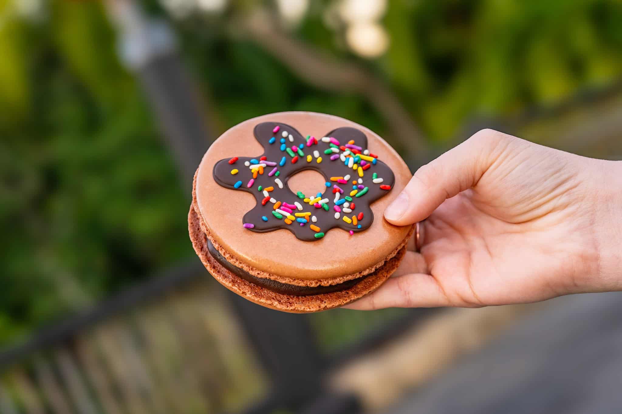- Clawhauser’s Big Donut Macaron: Macaron filled with chocolate ganache, strawberry jelly, and covered in chocolate glaze with rainbow sprinkles
